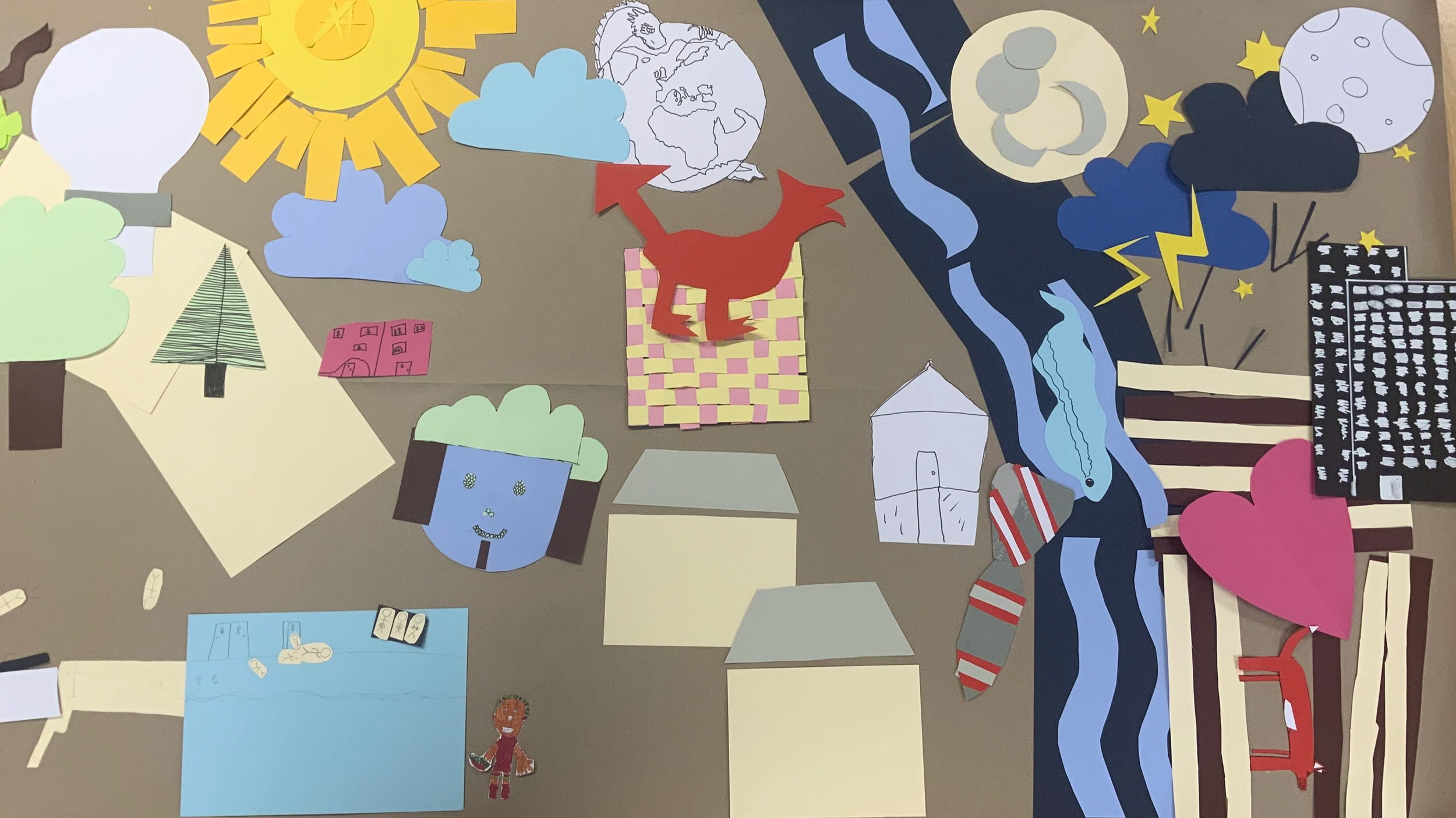 The cafeteria mural takes a quilt-inspired approach, bringing together individual visuals chosen by pupils into a single, cohesive composition. Developed through collage-based workshops, the imagery reflects what young people value about their school and the wider Fairwater area, including local landmarks, identities, and shared experiences. The overall layout loosely maps the surrounding community, using symbols linked to school identity and place to create a collective visual narrative rooted in pupil voice.